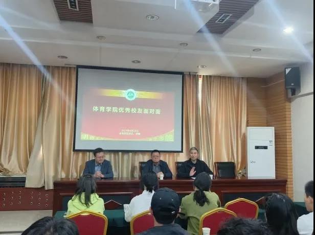 两位校友对母校精心培养和谆谆教诲表达了感谢,结合自己毕业后的学习、工作、生活情况做了分享。谭显红建议师弟师妹们,不要就体育学体育,要不断丰富自己的知识结构,提升综合素质,先就业后择业。吴磊围绕“一个目标,三个原则”鼓励大家坚定信念,全面发展,敢于挑战和突破,珍惜大学生活。
